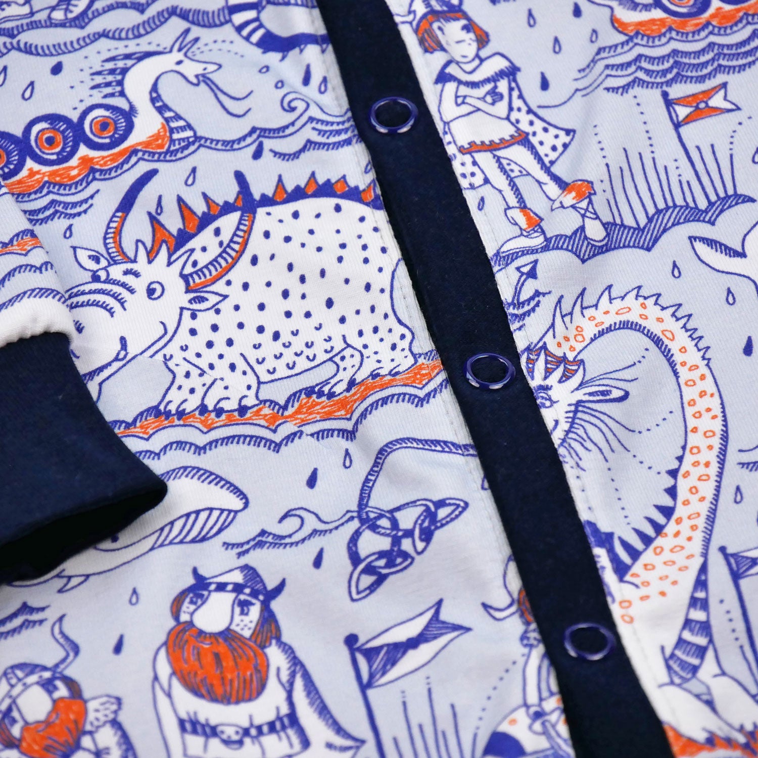 Auf zu neuen Entdeckungen: Der Einteiler „Wikingerwelt“ entführt kleine Abenteurer in eine Welt voller Drachen, Schiffe und mutiger Wikinger. Aus weichem Bio-Jersey gefertigt, schmiegt er sich angenehm an die Haut und bietet maximale Bewegungsfreiheit – perfekt für den Tag und die Nacht.