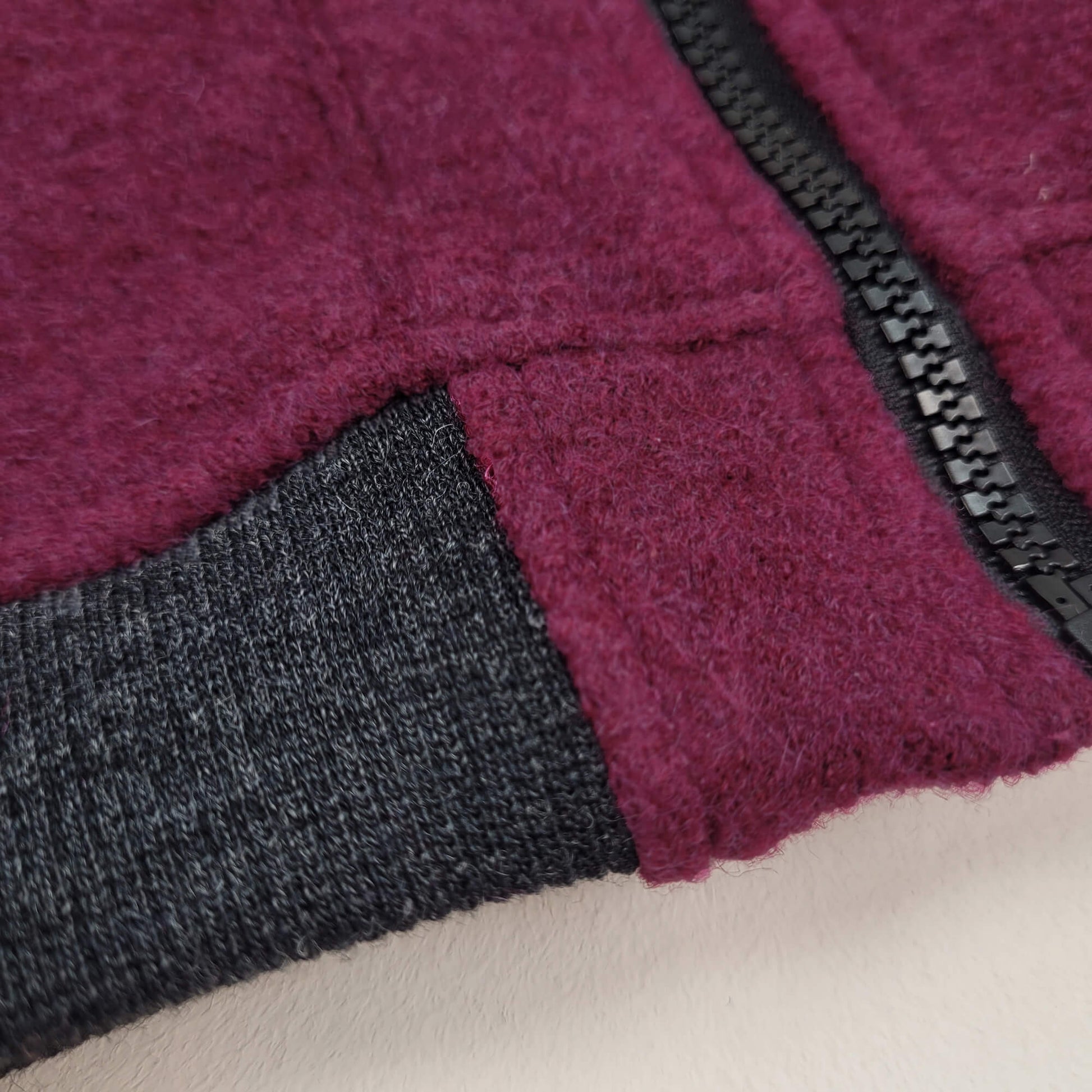 Halsabschluss, Bauch- und Ärmelbündchen bestehen aus hochwertigen Wollbündchen aus Merinowolle. Es wird kein anderes Material ergänzt, damit die Jacke auch an diesen Stellen ihre natürlichen Eigenschaften behält.
