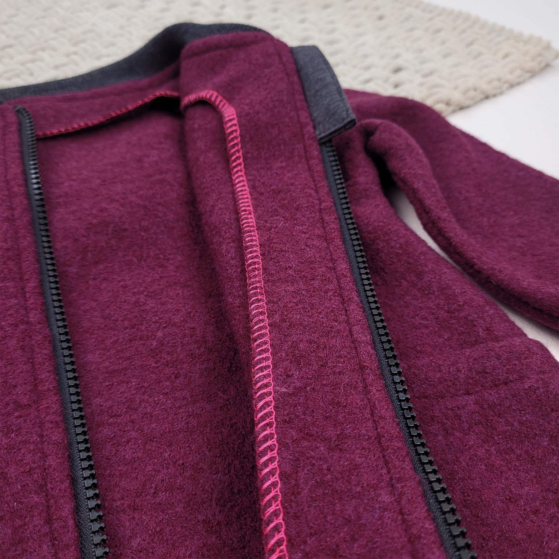 Farb-Info: Kirschrot (Bündchen) und Burgund (Merinowalk), bzw. Dunkelsmaragd (Bündchen) und Petrol (Merinowalk) sehen auf den Bildern zwar ähnlich aus, unterscheiden sich aber in den Farbtönen und sind in der Kombination farblich nicht otpimal.