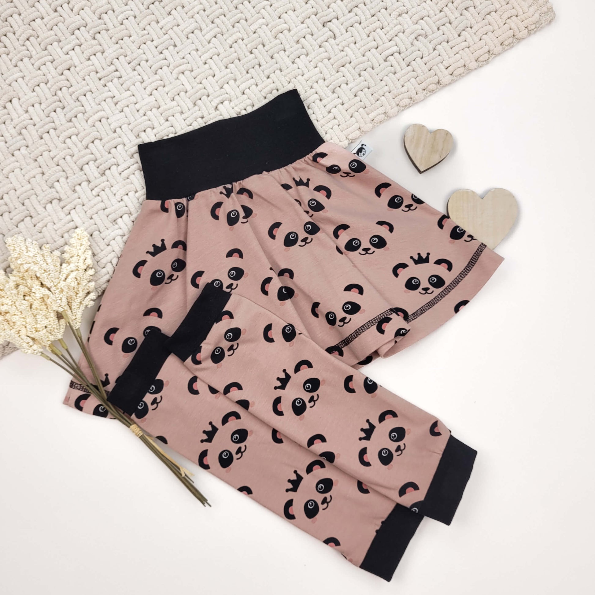 Bestehend aus einem Drehrock und passenden Stulpen im Panda-Design.