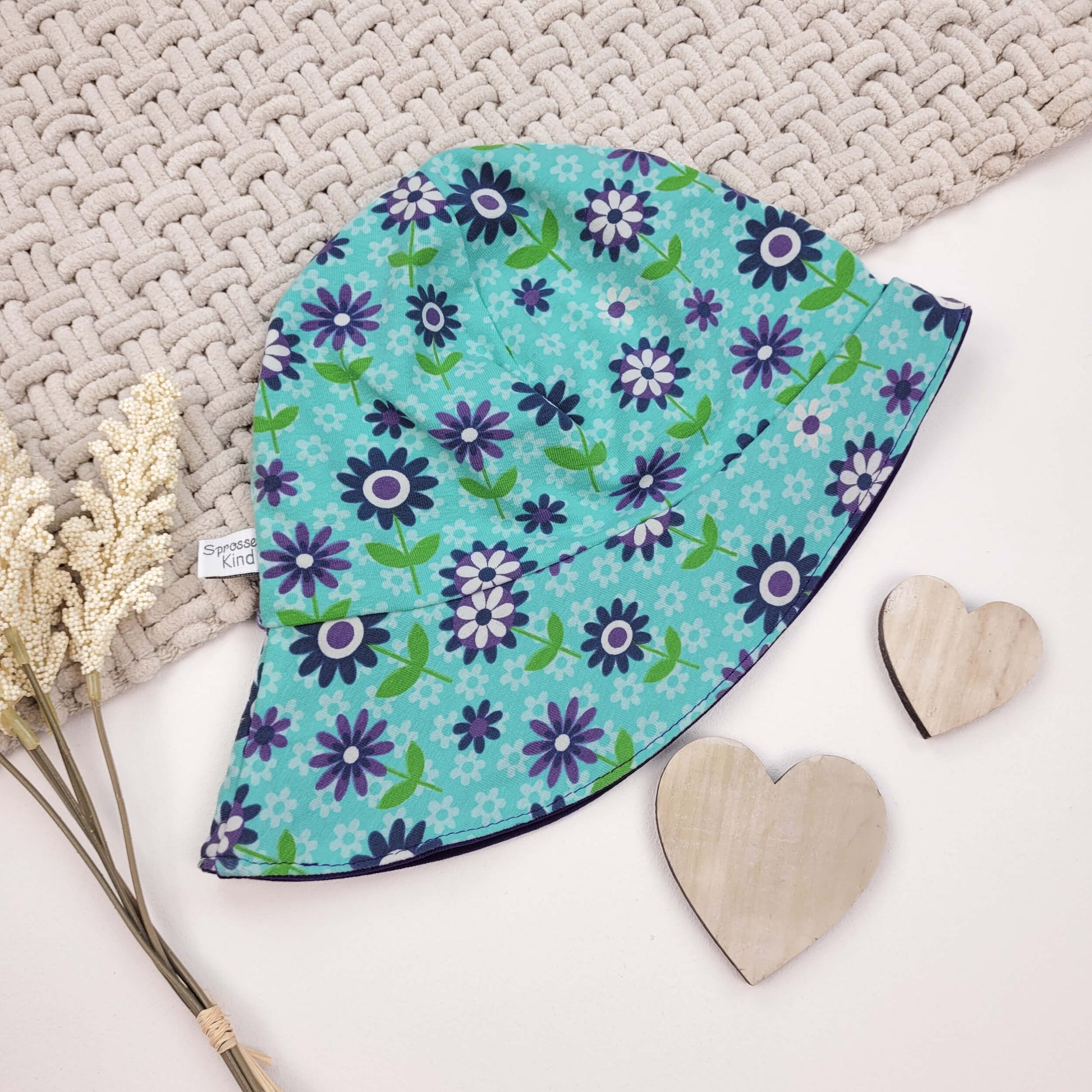 Der Sonnenhut ist aus Jersey gefertigt und mit einer Krempe mit passendem Innenfutter gearbeitet.