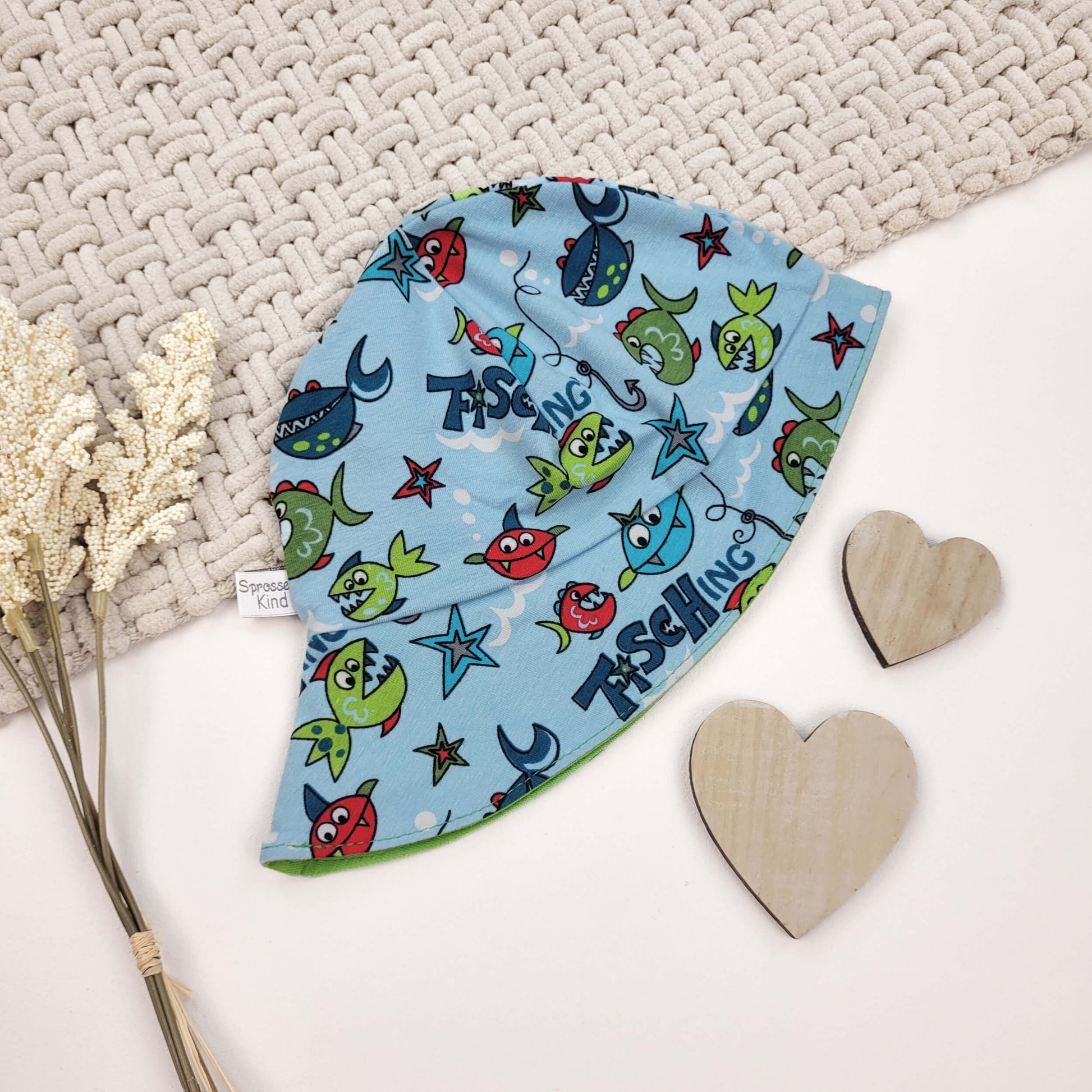 Der Sonnenhut ist aus Jersey gefertigt und mit einer Krempe mit passendem Innenfutter gearbeitet.