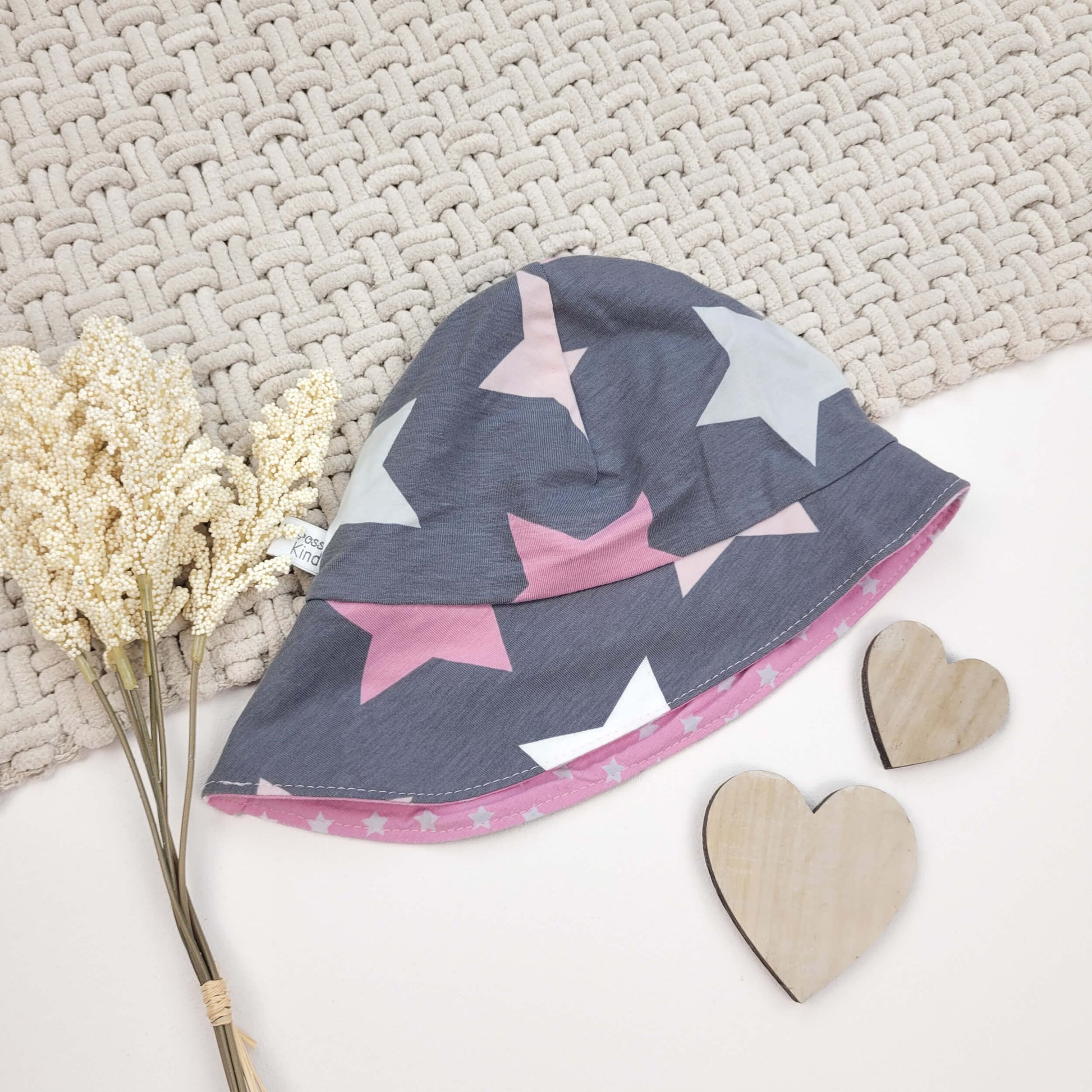 Der Sonnenhut ist aus Jersey gefertigt und mit einer Krempe mit passendem Innenfutter gearbeitet.