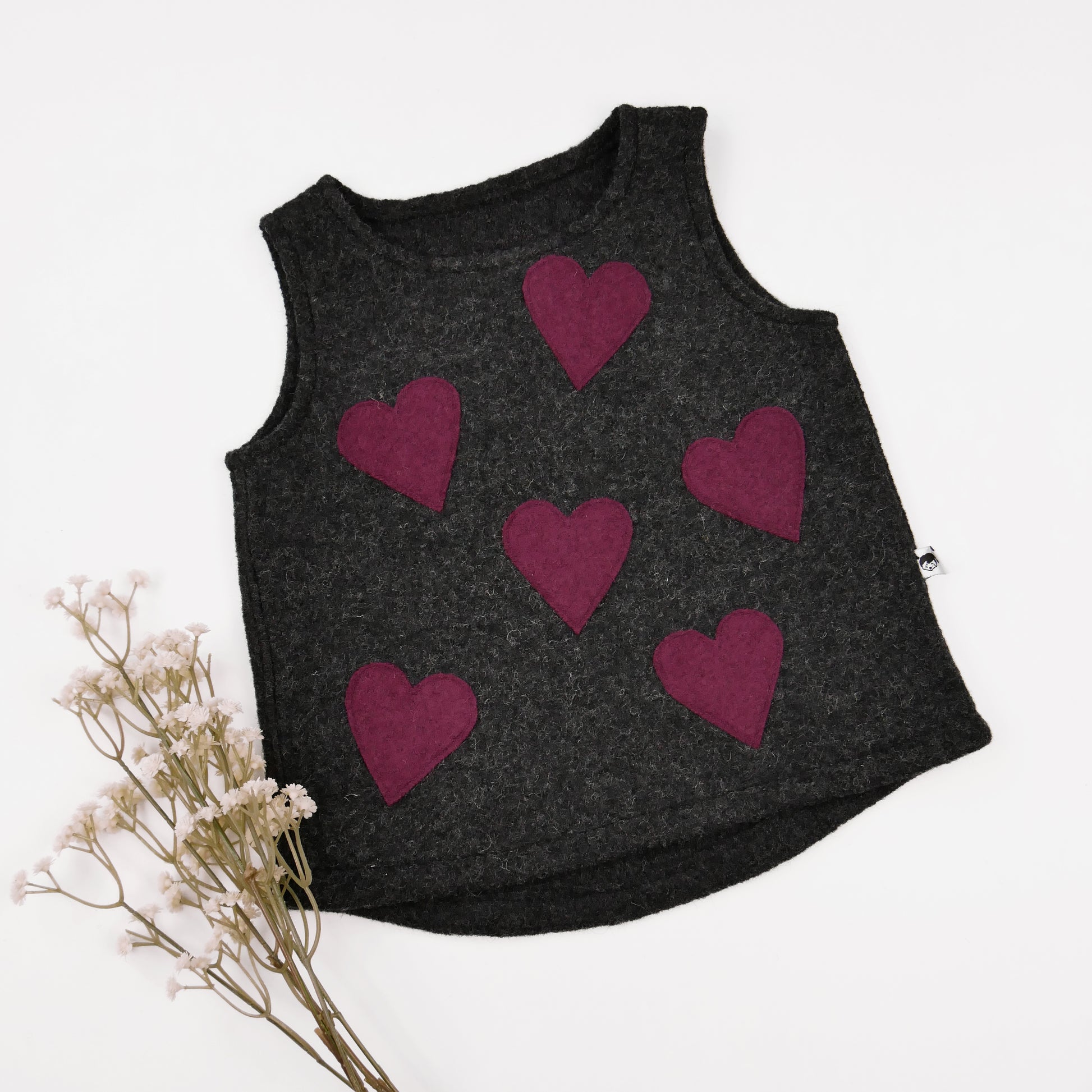 Walk-Pullunder aus reiner Wolle – anthrazit mit Herzapplikationen